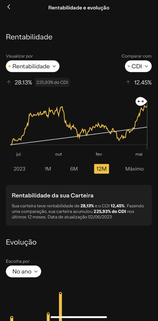 A minha carteira rentabilizou 28% em 12 meses… Quase o dobro que o índice Bovespa e 225% a mais que o CDI, que está bem alto por sinal.