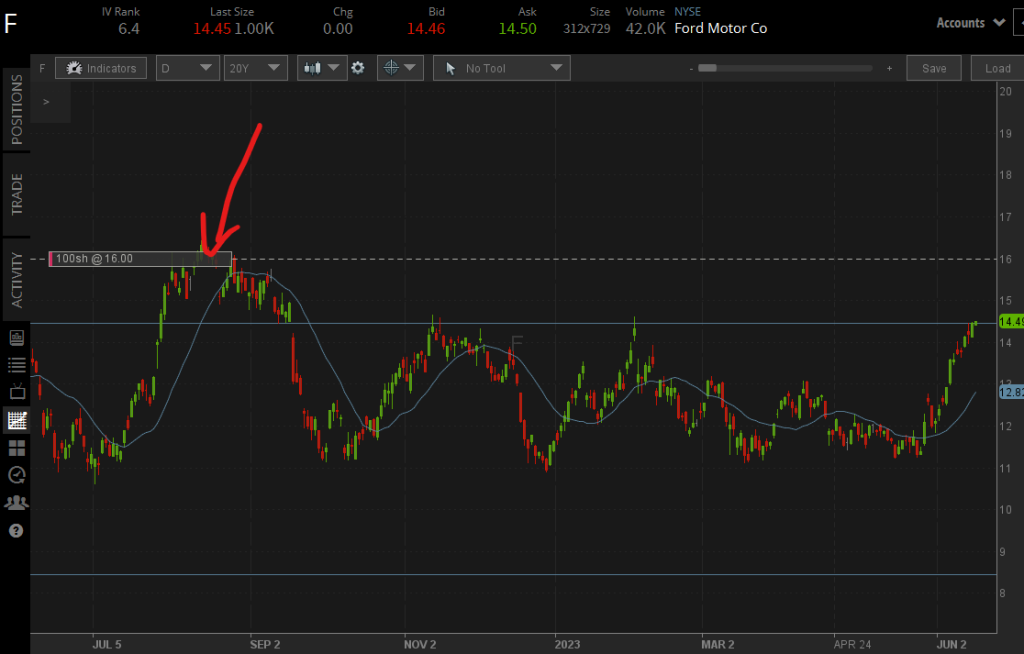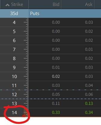 Se eu quisesse comprar as ações da Ford por $14, por exemplo, poderia vender uma opção de venda para 35 dias nesse valor.