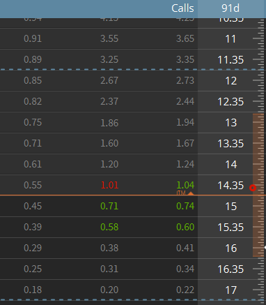Tenho a possibilidade de pegar vencimento de 91 dias e vender as opções de compra (CALLs) com valor de exercício em $17 recebendo $0.20 por isso.