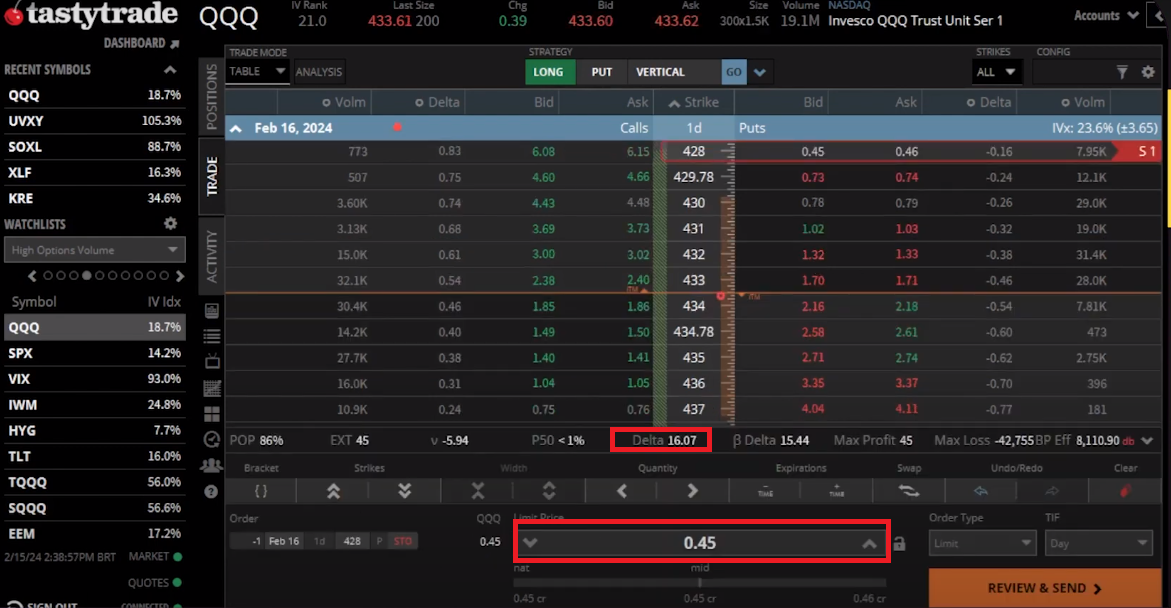 Fazendo a venda de uma PUT com vencimento diário, recebemos uma renda de 0,10% ao dia (US$0,45/US$428).