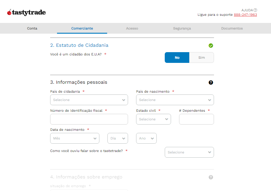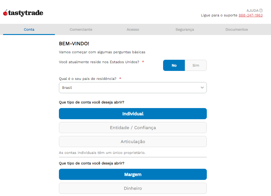 Para abrir sua conta, basta entrar no site tastytrade.com.