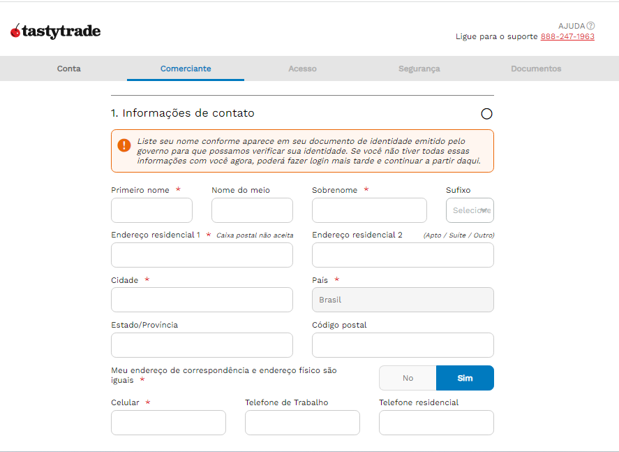 O próximo passo é preencher as informações pessoais.
