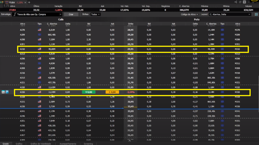 É importante observar que vem sempre esses valores serão iguais para as opções de venda e de compra.