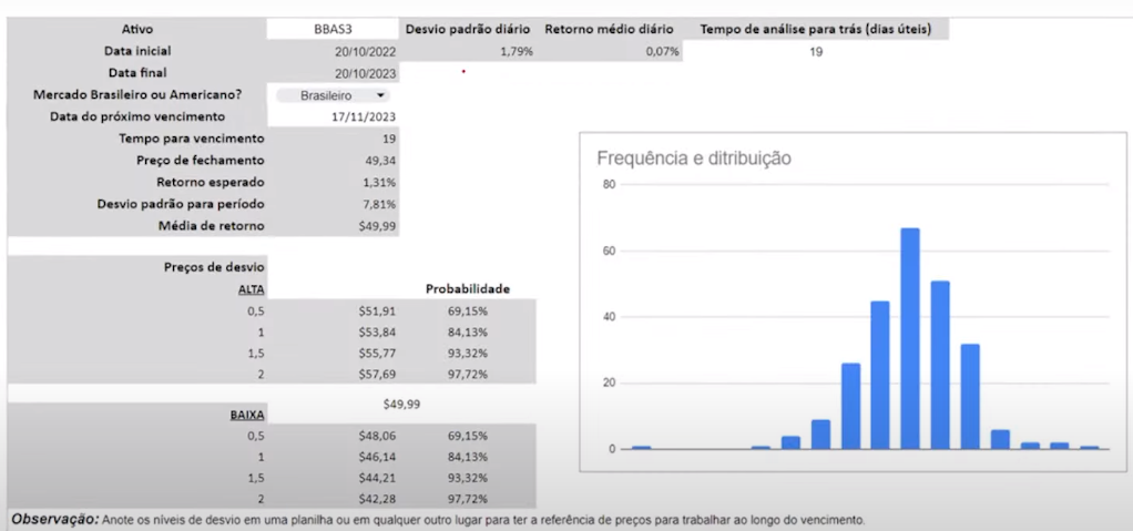 Nesse caso do Banco do Brasil, 15% de chance de bater R$ 53.84 ou R$ 46.14.