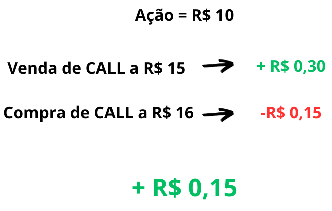 Eu posso fazer a venda de uma CALL no valor de R$ 15, recebendo para isso R$ 0,30 de taxa.