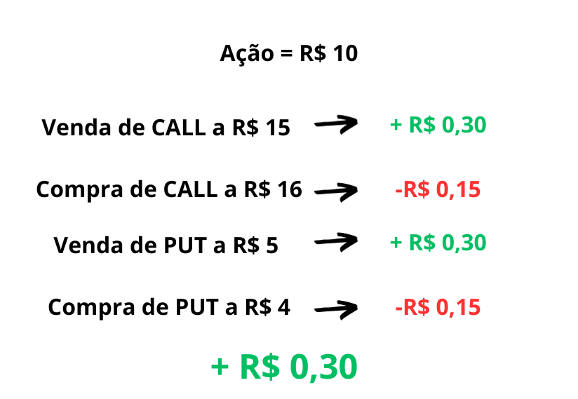 A combinação dessas duas estruturas é a estratégia que chamamos de Iron Condor.