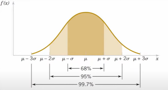 ). Além disso, há um cálculo com 68% de chance dele ficar entre 1 desvio padrão (de alta ou de baixa), 95% de chance de ficar entre 2 desvios padrões e 99,7% entre 3.