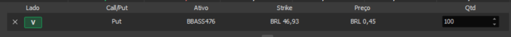 Então, supondo que você foi obrigado a comprar as ações do Banco do Brasil por R$46,93 e agora resolve se obrigar a vender a ação e receber para isso.