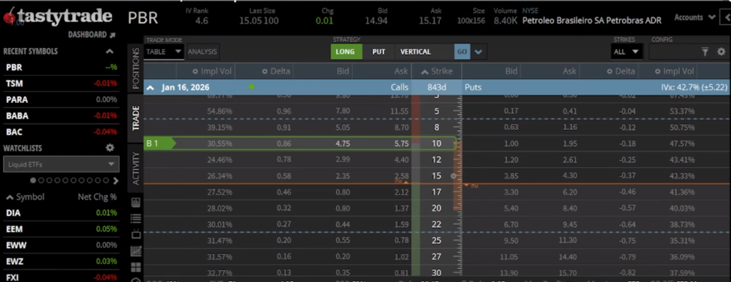 Exemplo Prático de uma Poor Man’s Covered Call com PETR4