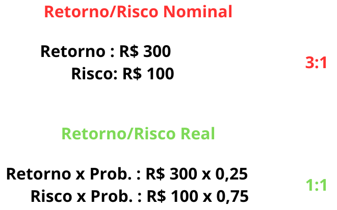De fato, isso é demonstrado matematicamente pela fórmula do Retorno/Risco Real, que considera em seus cálculos as probabilidades do ativo valorizar e desvalorizar.