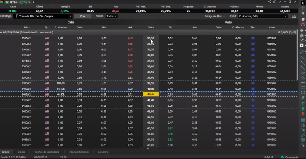 Mas a minha dica, caso você já queira começar a operar, é sempre tomar cuidado com a liquidez de um determinado ativo e checar qual é a faixa de strike que permite a negociação desses ativos com liquidez.