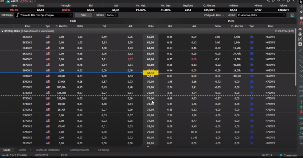 O ativo VALE3 por exemplo, está com uma liquidez interessante para o vencimento semanal de algumas opções.