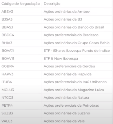 Como eu disse no começo desse artigo, a B3 liberou os vencimentos semanais de opções no dia 29/01 para os seguintes ativos: